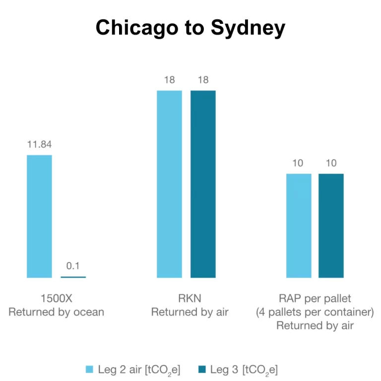 For instance, on a Chicago-to-Sydney route, a SkyCell 1500X hybrid container avoids 18 tons of CO2e compared to the RKN and 10 tons compared to the RAP, delivering total savings of 15 to 28 tons of CO2e per pallet.