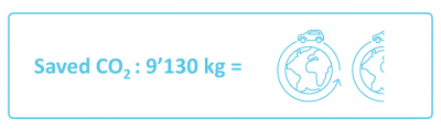 To help grasp how much 9.13 tons of CO2 are: it is equivalent to the emissions of one car driving 61’000 km, one and a half times around the globe.
